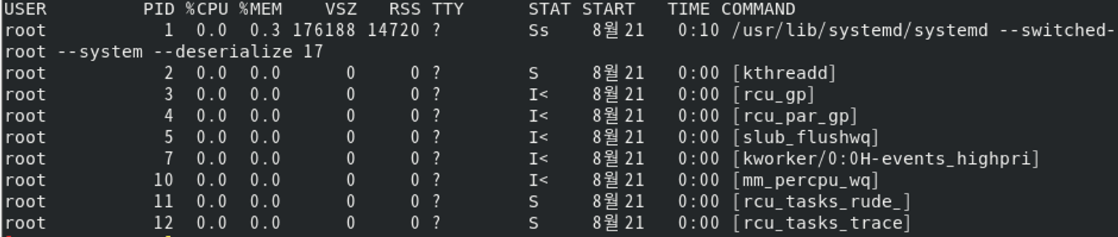 | -u (uid) | ์ง์ ๋ ์ฌ์ฉ์์ ์ฐ๊ด๋ ํ๋ก์ธ์ค์ ๋ํ ์ ๋ณด๋ฅผ ์ถ๋ ฅํ๋ค. |