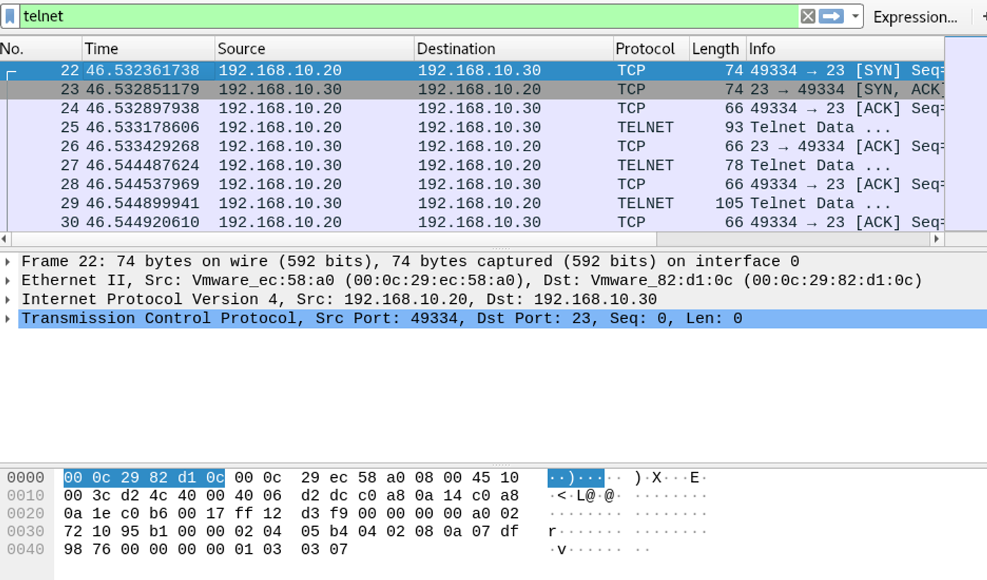 - Telnet 이용 접속 Wireshark로 패킷 확인