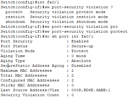 sw port-security violation protect