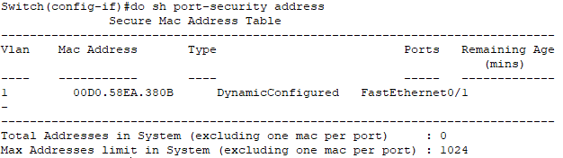 Maximum MAC Addresses : 1
