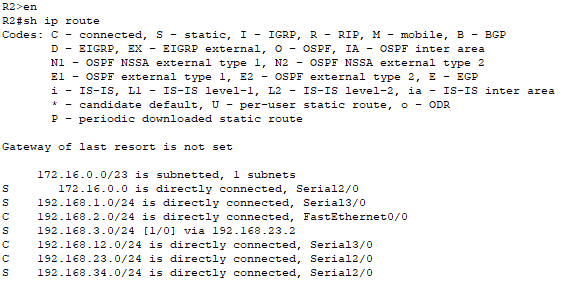 ip route 192.168.23.0 255.255.255.0 s3/0