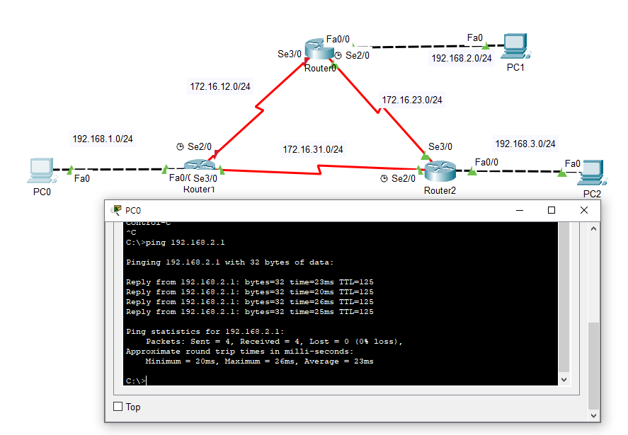 ip route 192.168.23.0 255.255.255.0 192.168.12.2